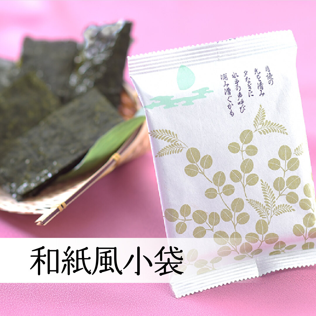 「旬採れ一番摘み」の海苔を秘伝のタレで仕上げた人気の桂浜の月を食べきりサイズの和紙風小袋に詰めました。